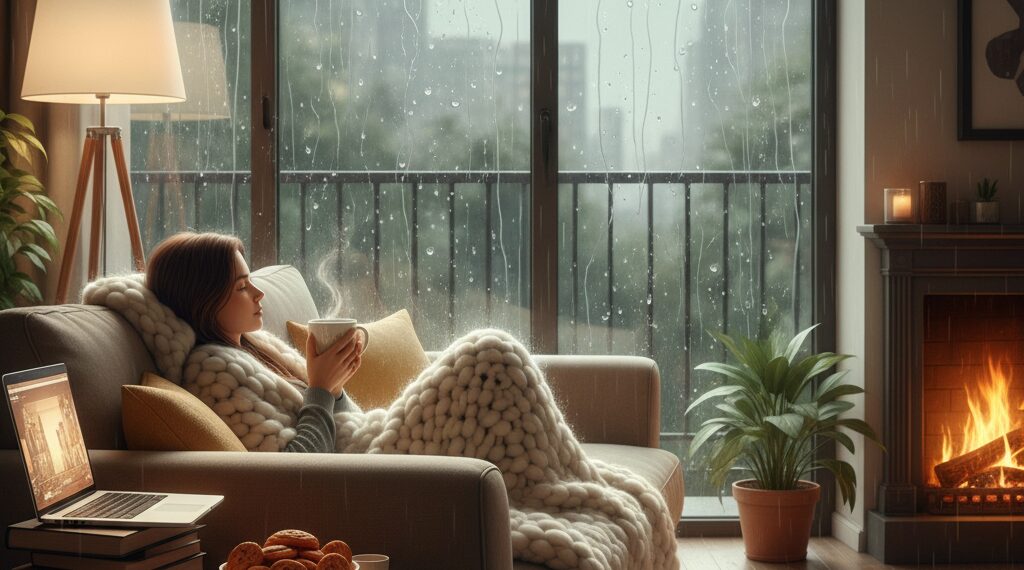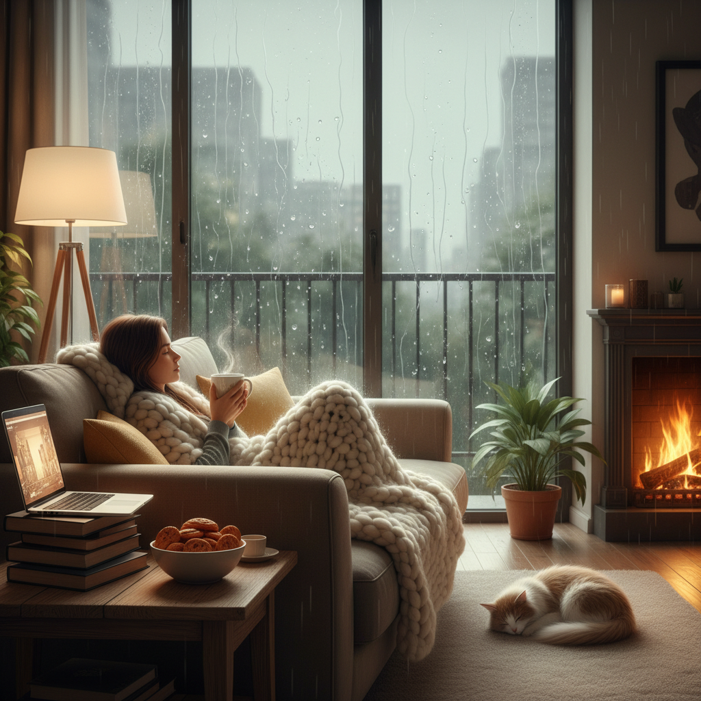 Ini dia comfort zone paling hakiki saat hujan melanda. Literally, nikmatin selimut tebal, bantal empuk, sambil streaming film atau serial yang udah lama masuk watchlist. Atau, kalau kamu bookworm, ini perfect banget buat marathon baca buku-buku yang selama ini cuma numpuk di rak. Bayangin, teh hangat di samping, selimut lembut, dan cerita yang bikin penasaran. Tambahin kopi atau cokelat panas, which is, a perfect combination yang susah ditolak. Buat kamu yang suka dengerin musik, bikin playlist khusus musim hujan yang instrumental atau jazz, which is, bisa bikin suasana makin syahdu dan menenangkan.