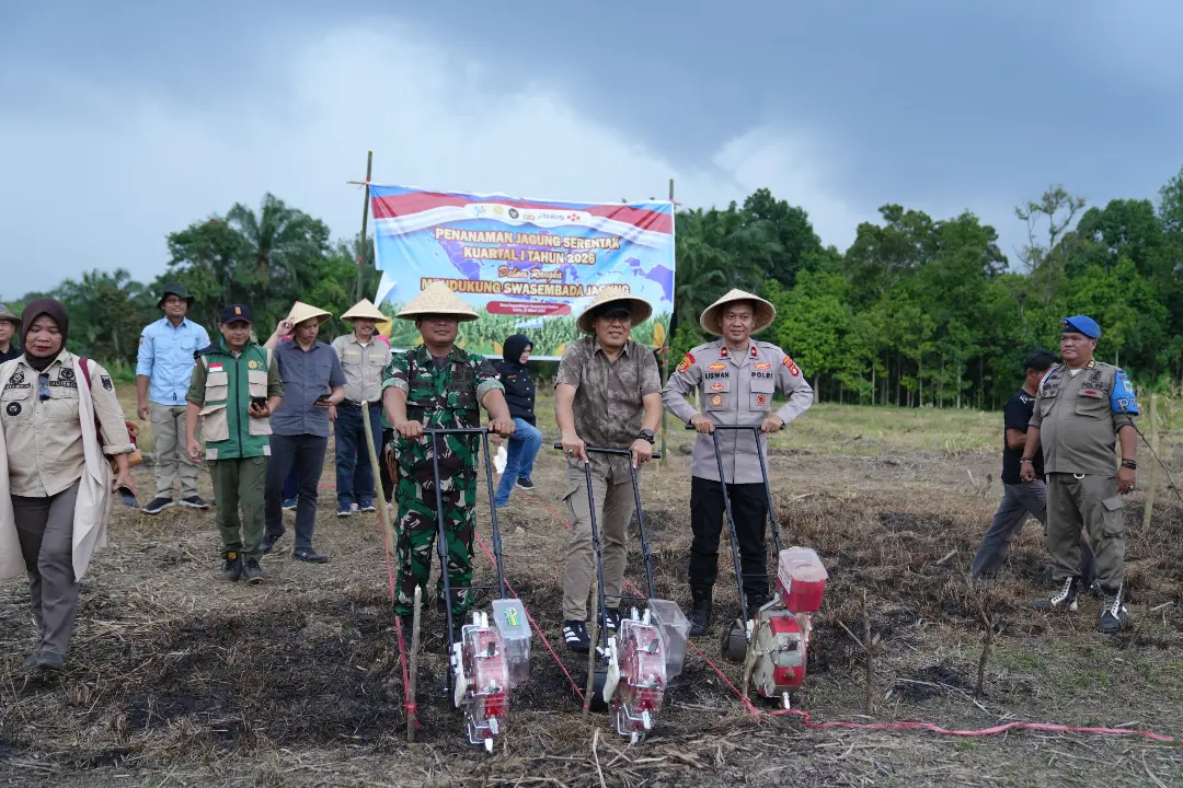 Bupati Lahat, Bursah Zarnubi, yang diwakili oleh Sekretaris Daerah Kabupaten Lahat, Chandra, S.H., M.M., menghadiri kegiatan penanaman jagung serentak yang dilaksanakan di Desa Penandingan, Kecamatan Pseksu, pada Sabtu (07/03/2026).